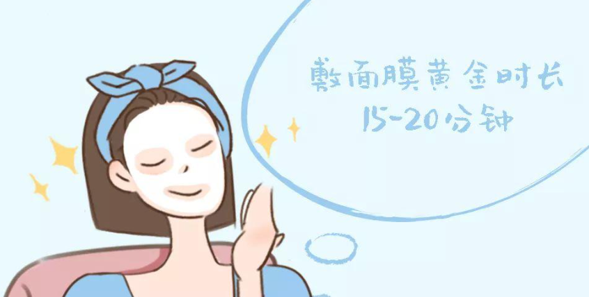 面膜时间15分钟到20分钟为宜,除非它有特别标注。不要以为面膜敷的时间越长,皮肤可以吸收的营养就越多,实际情况恰恰相反。敷太久了会把皮肤本来的水分给吸走了,情况严重者还会出现面色发黄的现象。其次如果时间太短,只敷个10分钟不到,面膜的营养还不能被皮肤最大程度吸收,造成浪费,时间过长,也是不可取的。