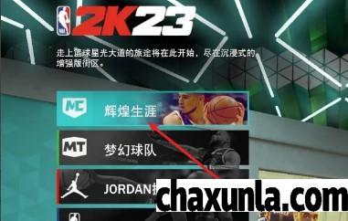 首先打开NBA2K23,点击辉煌生涯。