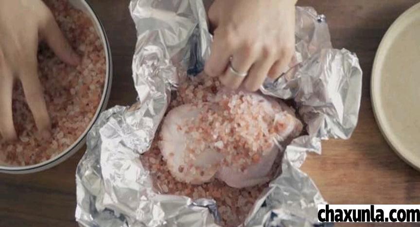 准备好鸡之后,用厨房纸将冰表面的水分擦干。取多层锡纸放成一个容器,然后将粉盐均匀的放在周围之后放入筒子机,在上面要撒上粉盐,完全包裹童子鸡之后再铺上锡纸,让童子鸡密封。放在一边之后可以取出遇热的铁锅,然后将密封好的鸡放在锅中,在表面划一个小口。之后就可以送入烤箱了,200度的温度局考50分钟左右就可以取出。
