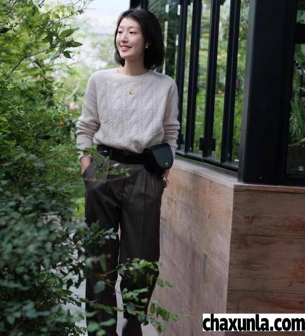 西装裤经过不断的改革,具有干练和气质特色。不仅给足了腿部空间,而且还显瘦,遮肉效果较好,建议羊绒衫+西装阔腿裤搭配。