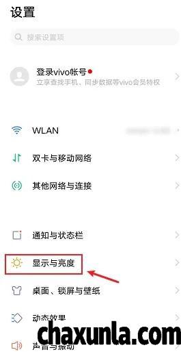 首先打开vivo手机,点击设置,点击显示与亮度。