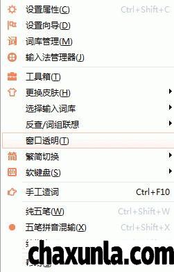 首先打开输入法,点击窗口透明。