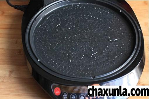 在搅拌的过程中要放入一点点清水,直接将所有的东西搅拌成糊状的物质。由于在制作西葫芦鸡蛋饼的时候使用的是电饼铛,而我们需要将电饼铛预热,再放入一点点油,借助家里面的勺子直接挖出面糊,放到电饼铛当中。