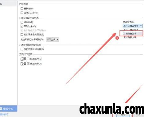 在选项对话框中可以选择打印隐藏文字,再点击确定即可。