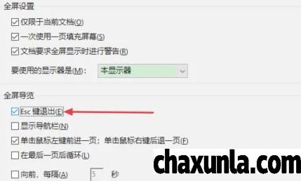最后在右侧全屏浏览中勾选esc键退出即可。