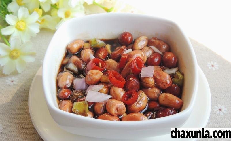 老醋花生。把花生洗干净晾干,油温烧至五成热,把花生下锅炸干,然后准备料汁,放上适量的醋,一些酱油或者老抽,放入盐,糖,味精,一些耗油,还有一些花椒油。