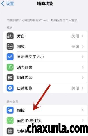 首先打开手机设置辅助功能,点击触控。