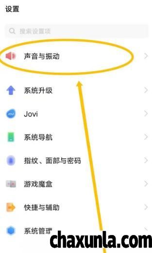 首先打开手机设置,点击声音与振动。