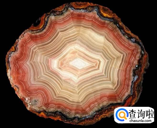 鉴定方法:玛瑙是一种胶状矿物,质地坚硬、致密细腻,光泽度以及透明程度都与众不同,常呈同心层状和规则的条带状出现,油脂蜡状光泽至玻璃光泽,贝壳状断口,无解理,隐晶质结构。如将玛瑙的平面进行抛光处理之后可呈现出玻璃光泽、油脂光泽或丝绢光泽较为常见与频繁,微透明到全透明的光泽都有。