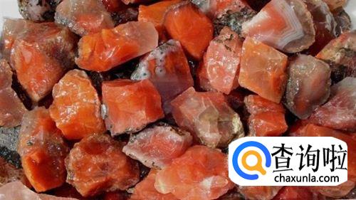 北红玛瑙:金黄、桔黄色为主,绚丽温润、俏色丰富,硬度与透明度都略高于一般玛瑙,其外形大都不规则。