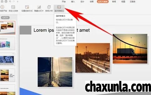 首先我们单击工具栏幻灯片放映下的演讲者备注。