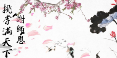 桃李满天下。桃李:指培养的后辈或所教的学生。比喻学生很多,各地都有。唐 狄仁杰 门生众多,累向 武则天 推荐将相多人,或谓 仁杰 曰:"天下桃李,悉在公门矣。"唐 白居易《奉和令公绿野堂种花》:" 令公 桃李满天下,何用堂前更种花?"