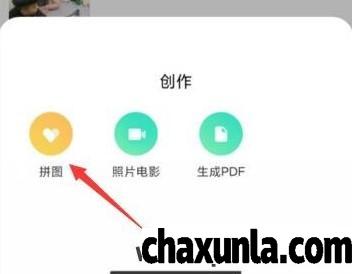 弹出菜单栏中,点击拼图。