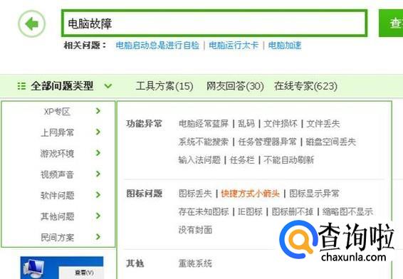 在出现的界面点一下右边的“电脑故障”。