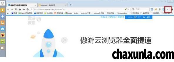 首先打开傲游浏览器,点击右上角的箭头图标。