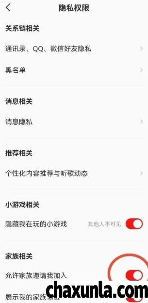 把允许家族邀请我加入,开启即可。