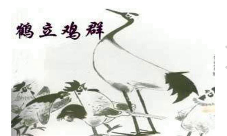 嵇绍在世时,有一次有人对王戌说“昨天在众人中见到嵇绍,气宇轩昂如同野鹤立鸡群之中。”后来就用“鹤立鸡群”比喻一个人的仪表或才能在周围一群人里显行很突出。
