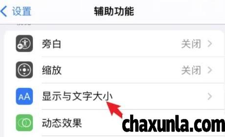 首先打开手机辅助功能,点击显示与文字大小。