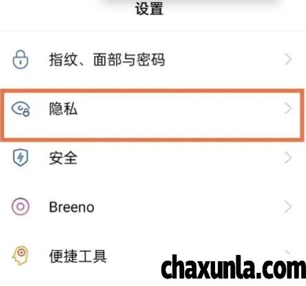首先打开OPPO手机设置点击隐私。