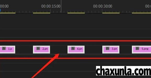 时间轨道上面多段素材之间有空隙,我们可以按键盘上CTRL+a全冲之选素材。
