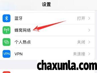 进入iPhone手机设置点击蜂窝网络功能。