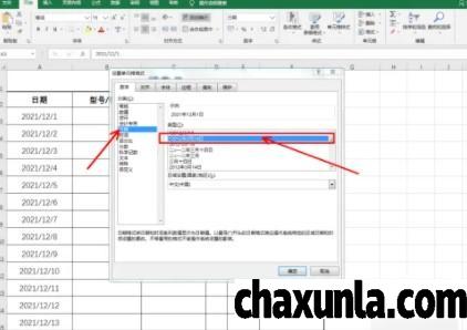 点击窗口左边日期之后,选择窗口右边一款日期格式类型之后,点击确定即可。