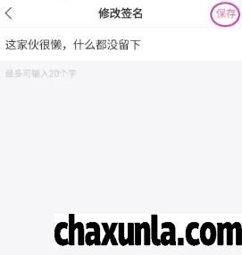 点击签名,输入想要更改的签名内容,保存即可。