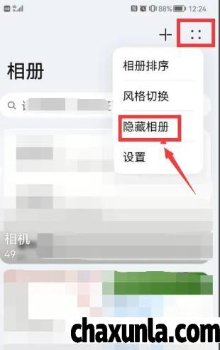 进入相册界面,点击左上角4个点,选择隐藏相册。
