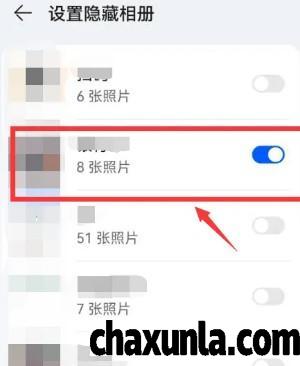 进入设置隐藏相册界面,开启隐藏的相册即可。