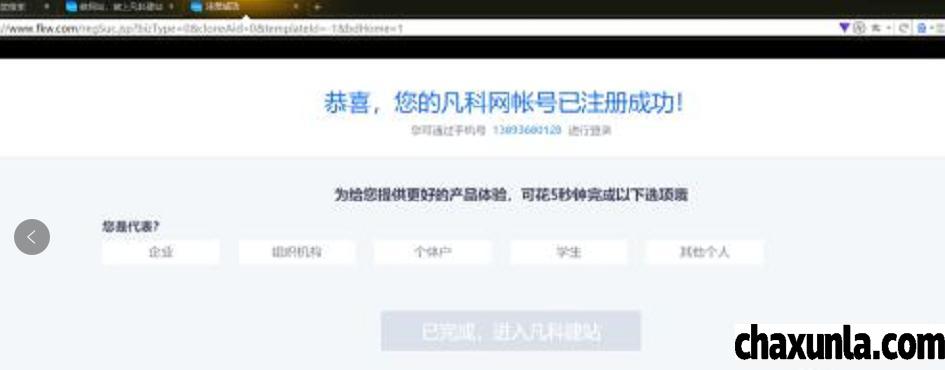 接下来界面中会显示账号已经注册成功,然后选择下面的选项,点击已完成后进入凡客建站。