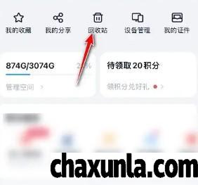 在个人页面当中找到回收站,进入回收站之后,找到想要恢复的文件,点击后面的圆圈勾选。