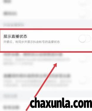 页面跳转之后找到展示直播状态一栏,点击右边按钮,开关呈绿色即可。