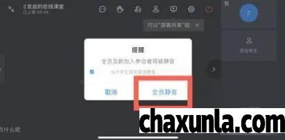 跳出对话框之后,点击全员静音即可。