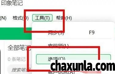 打开印象笔记APP找到菜单工具栏,点击选项。