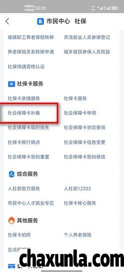 找到社保卡服务这一栏中打开社会保障卡补换。