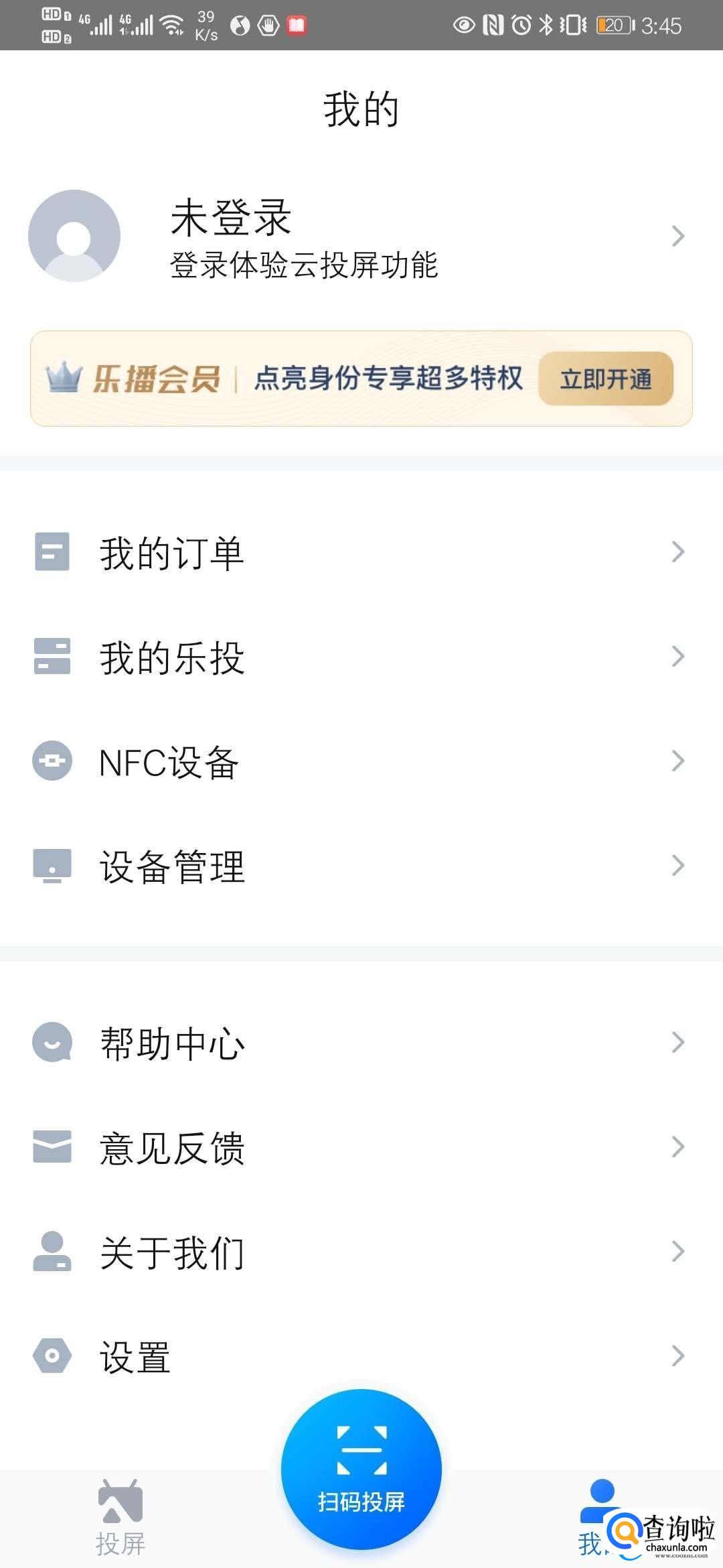 首先我们打开乐播投屏软件,并点击右下方的【我的】