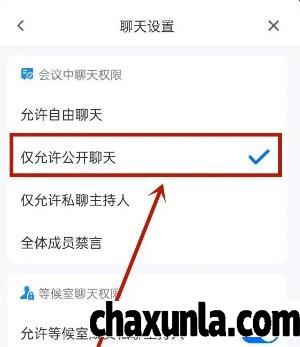 最后点击,仅允许公开聊天选项,即可取消私聊。