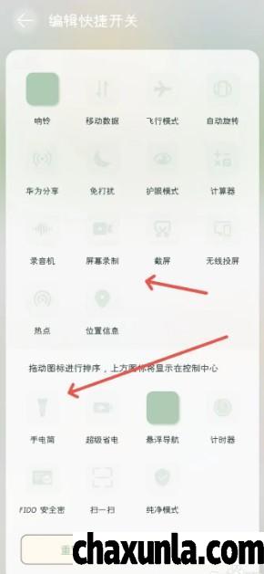 点击编辑快捷键,长按手电筒移动至控制中心上方即可。