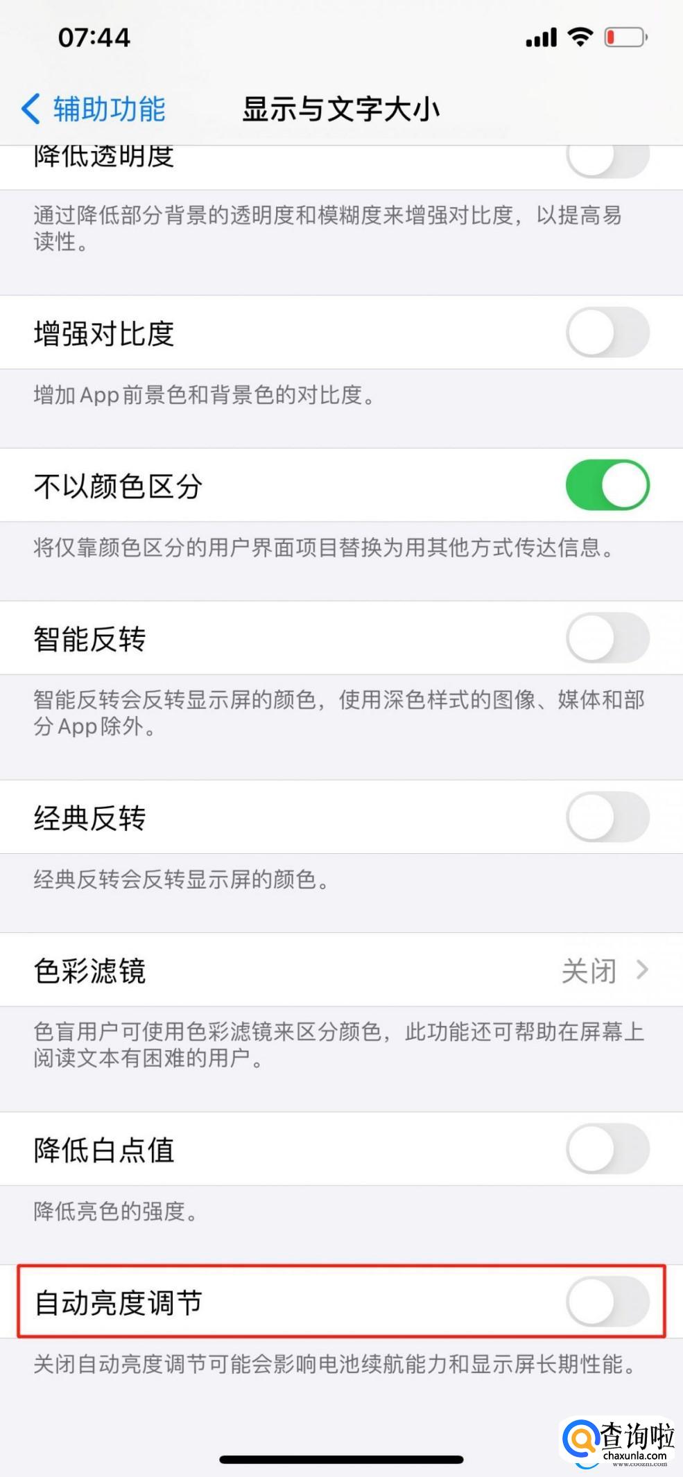 打开之后找到【自动亮度调节】选项并关闭即可。