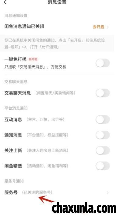 闲鱼如何设置开启服务号通知