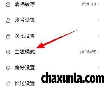 在设置页面,点击主题模式。
