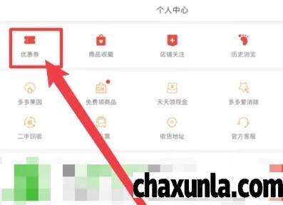 首先在手机上打开软件拼多多,在个人中心页面上方点击优惠券。