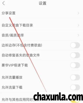 点击【设置】之后的选项并找到【分享设置】的选项并打开,即可。
