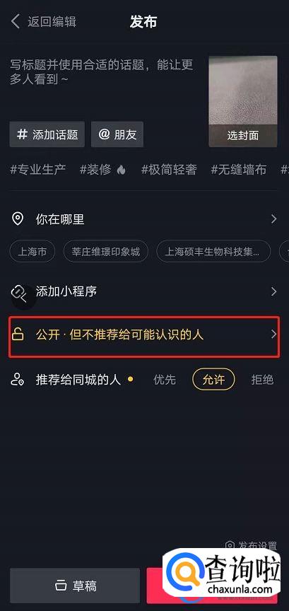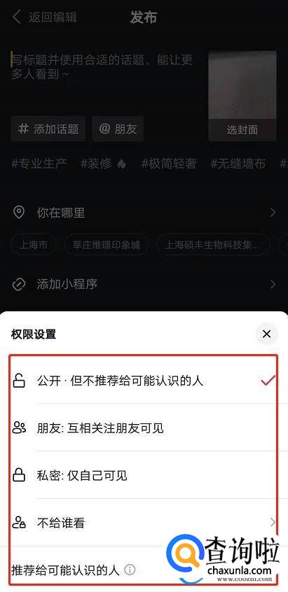 打开之后点【谁可以观看这个视频】即可设置你不给谁看。
