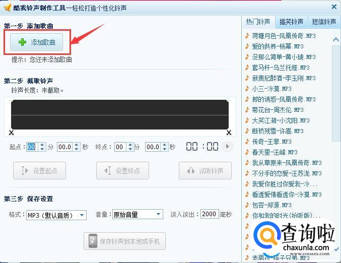 我们可以非常清楚的看到,这工具列出了三步,我们选第一步,添加铃声,添首大家自己喜欢的歌曲。