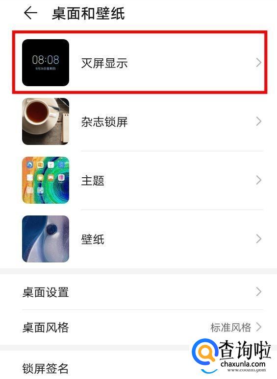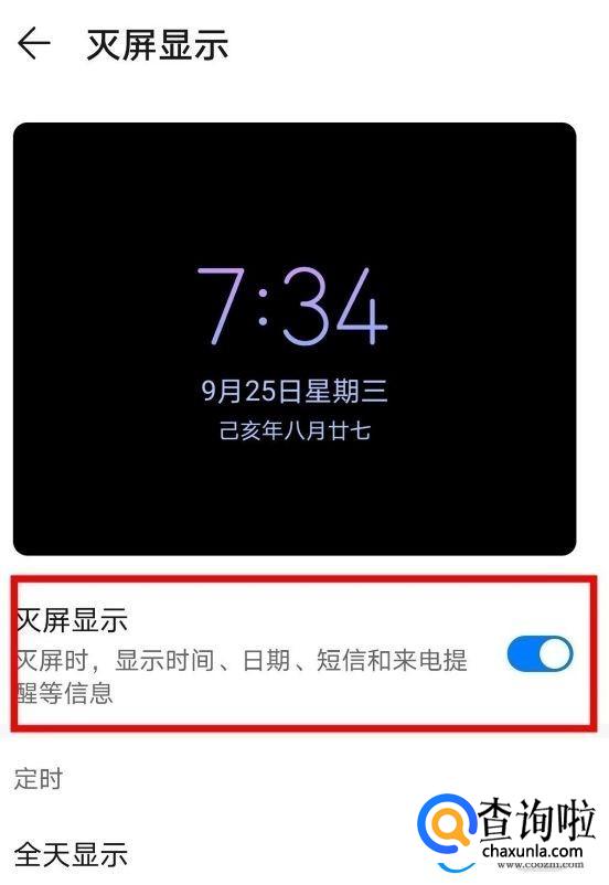 打开之后我们开启【灭屏显示】选项即可。