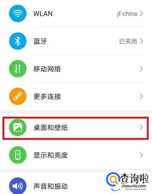 首先打开设置,并点击【桌面和壁纸】选项。