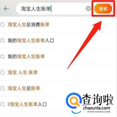 打开之后搜索【淘宝人生账单】并点击【搜索】