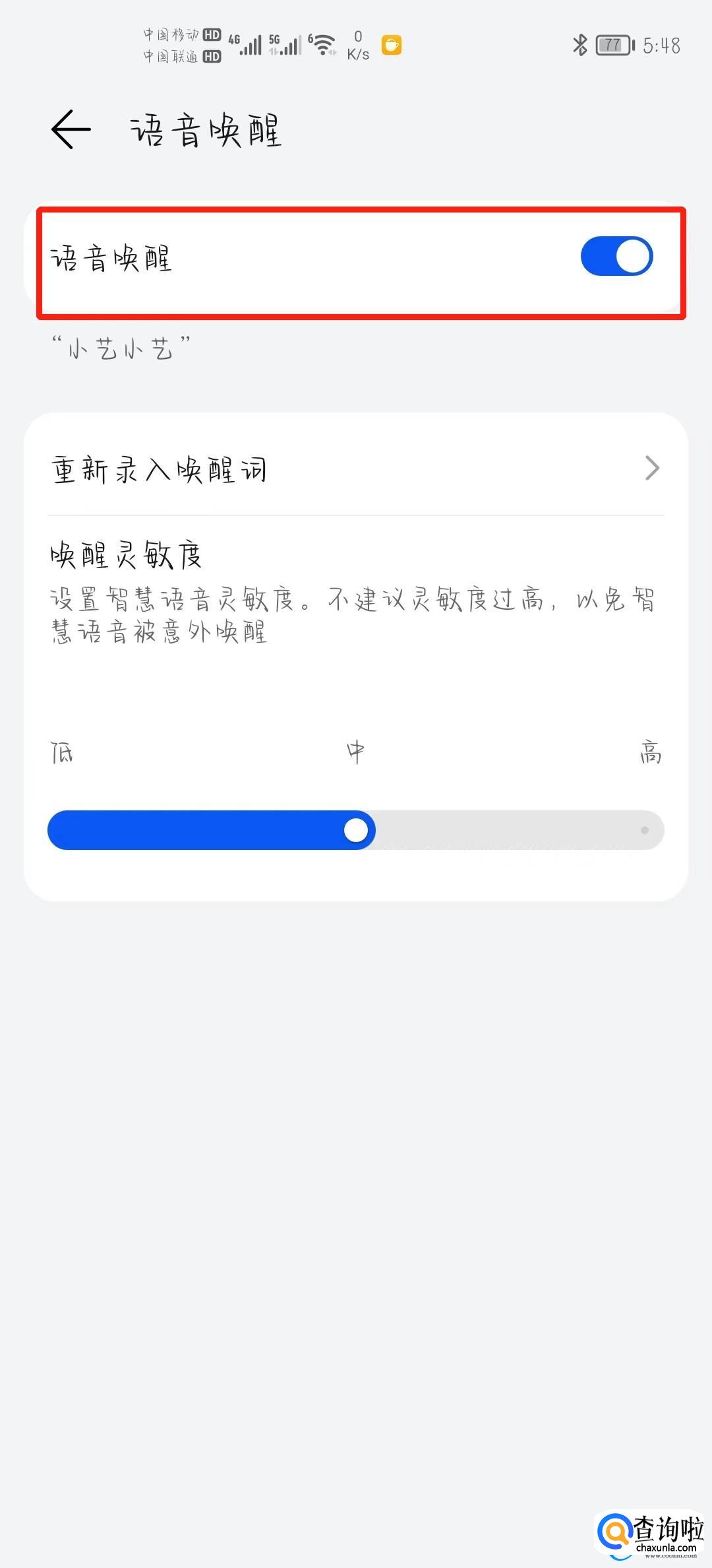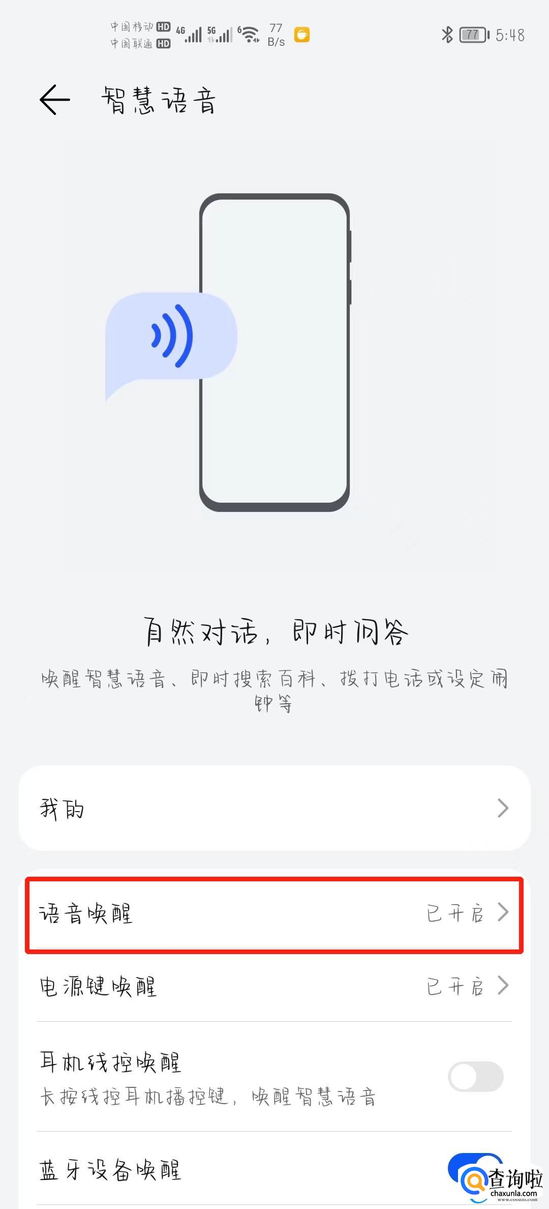 打开之后我们找到【语音唤醒】选项并打开即可。