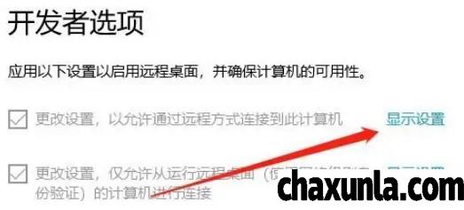 选中开发者选项,点击显示设置。
